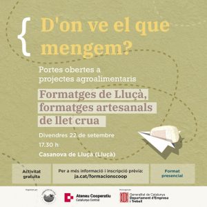 L’activitat està organitzada entre Formatges de Lluçà, Mengem Osona i l’Ateneu Cooperatiu de la Catalunya Central. L’aforament és limitat.