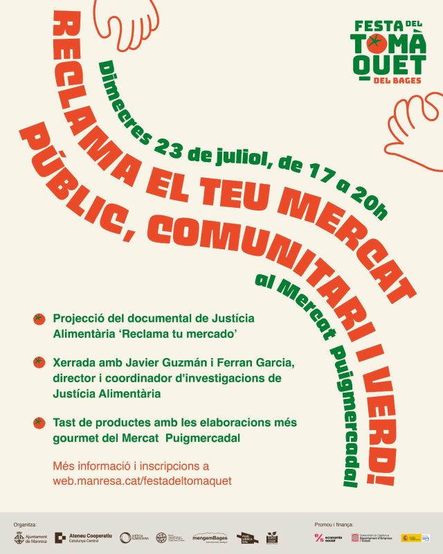 Activitat realitzada en el marc de la Festa del Tomàquet del Bages. Es comptarà amb la participació de Javier Guzmán (director de Justícia Alimentària) i Ferran Garcia (coordinador d’investigacions de Justícia Alimentària).