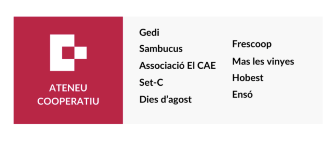 - Intercooperació: Impulsem la col·laboració, la participació i la construcció de xarxes entre cooperatives, entitats d’economia social i solidària i la resta d’agents del territori, com a via per compartir recursos i enfortir el projecte col·lectiu.